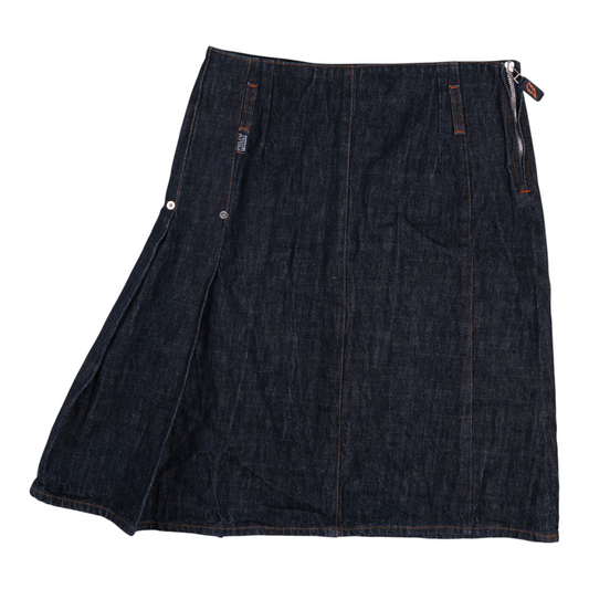 W< Pleated Denim Skirt – Dark Wash