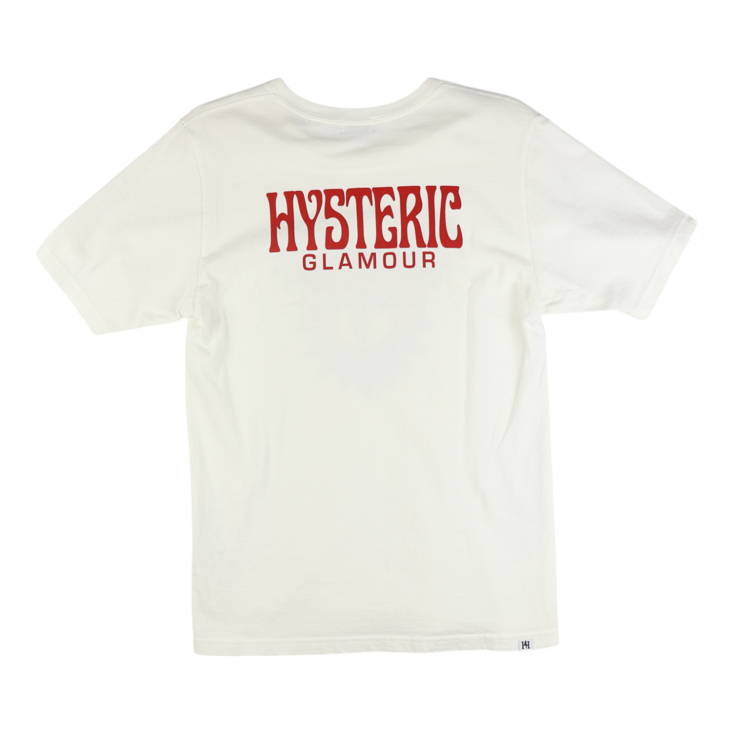 This white tee shirt features a graphic of the Hysteric Bear's face, with "Hysteric Glamour" written in the back in red.